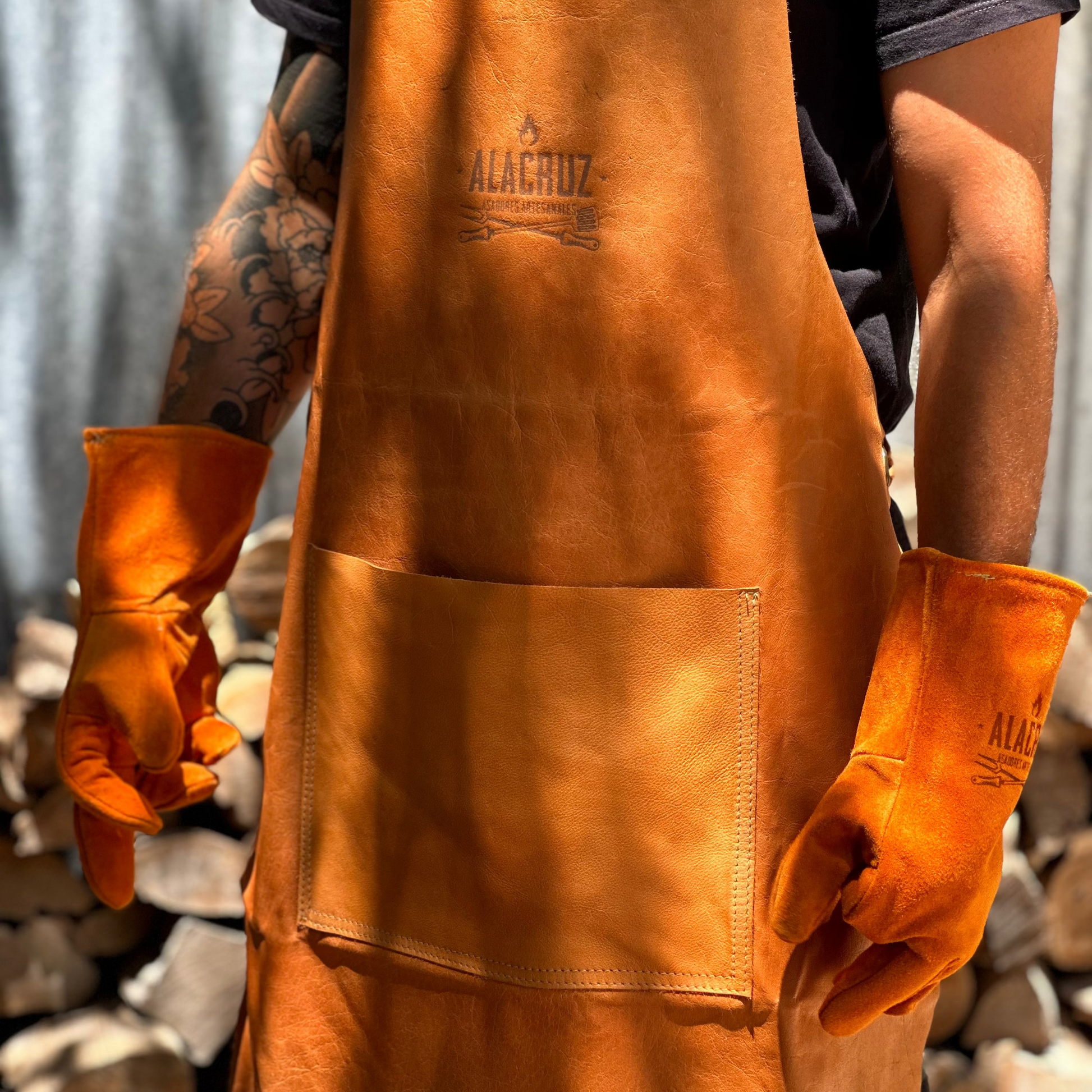 Les presentamos nuestro delantal parrillero, fabricado en cuero 100% vacuno.