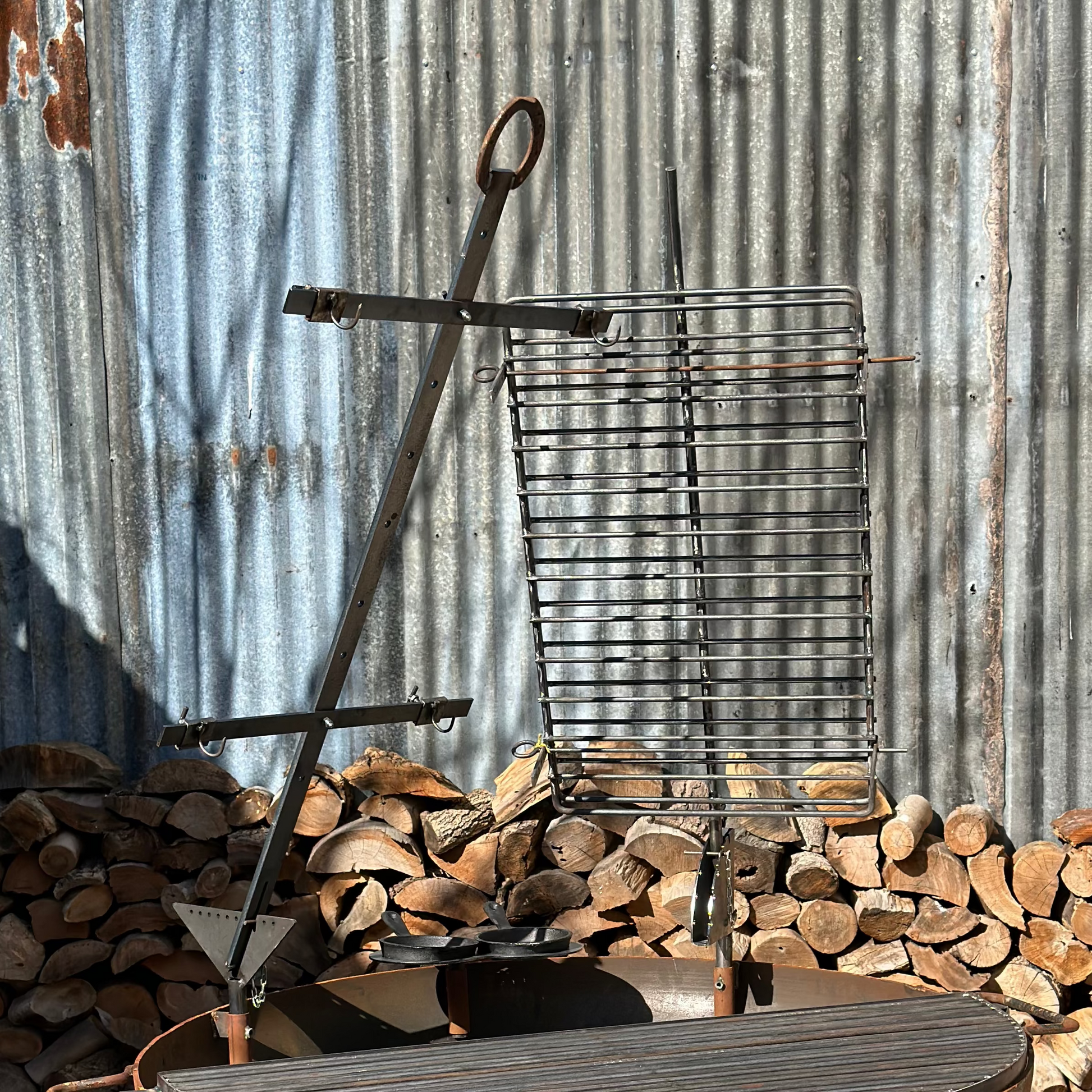 Este modelo de estaca cruz clásica también está fabricada en hierro y tiene una regulación de siete posiciones que te permitirá regular la altura del costillar con respecto al fuego para manejar la temperatura de cocción. Tiene una manija en la parte superior para poder manejarlo, como así también cuatro ganchos para fijar el costillar