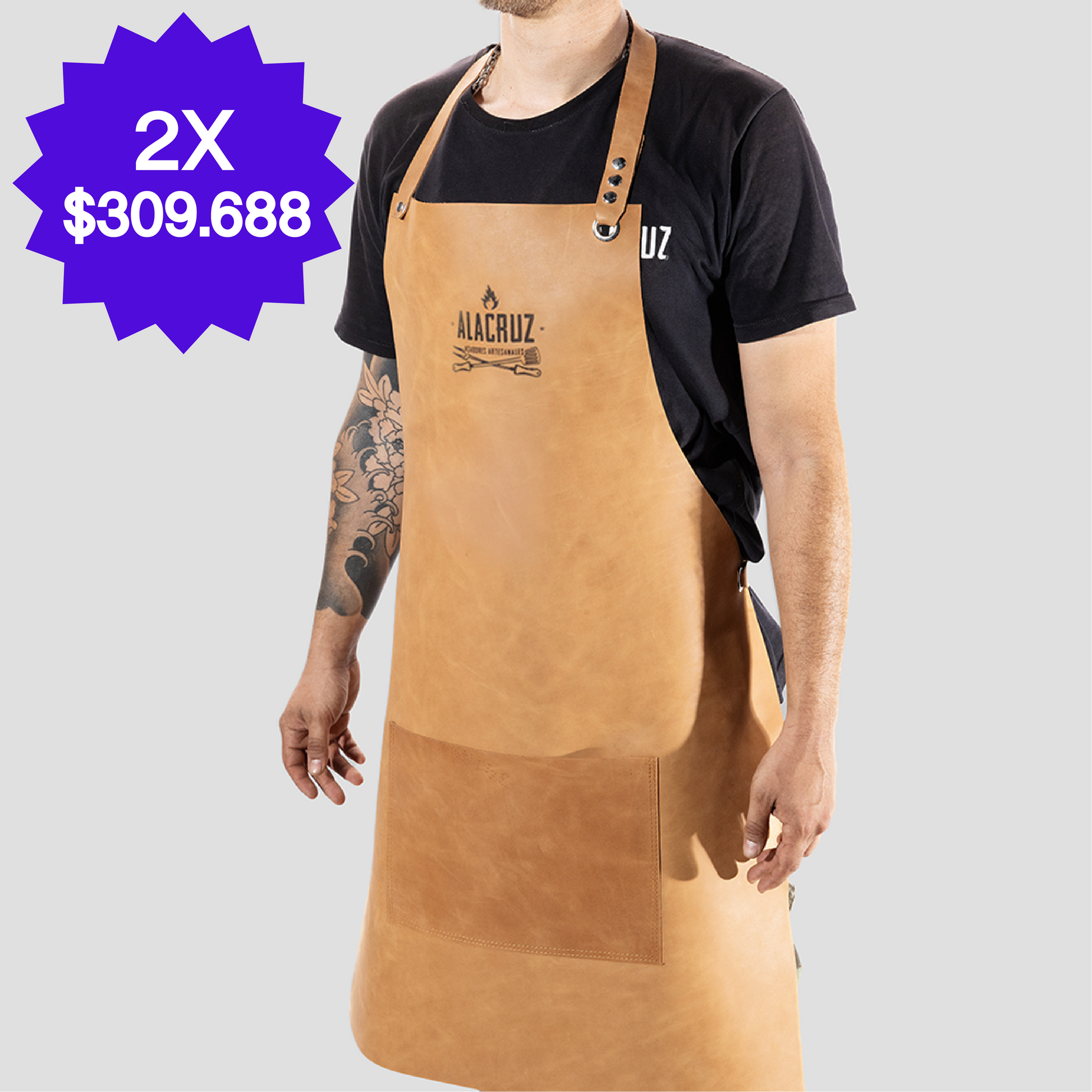 El delantal de Alacruz es ideal para esos cocineros que se ponen la camiseta a la hora de hacer el asado. Este accesorio es fundamental, no solo para cuidarse de las chispas que salen del fuego, sino también para que, al momento de pinchar las achuras o los choris, no se manche la ropa de grasa.